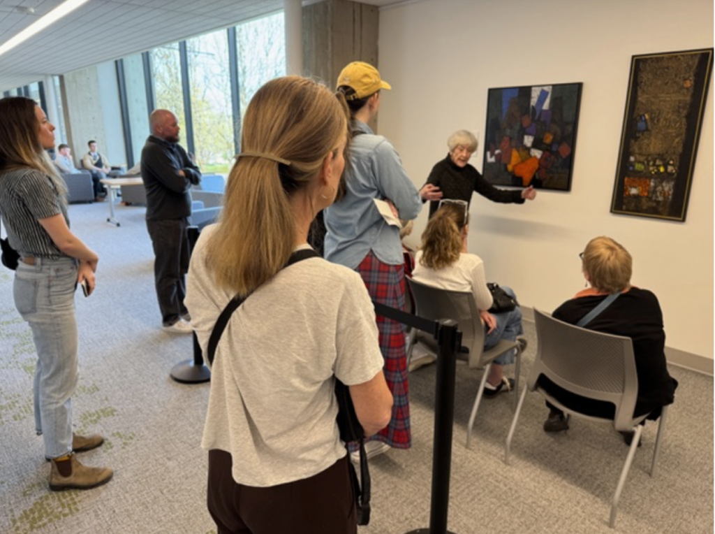 The conversation that followed the silent viewing allowed participants to compare perceptions and discoveries. As often happens on Slow Art Day, viewers noted details they might otherwise have missed — subtle shifts in color, interplay between positive and negative space, and how each painting’s scale influenced their physical experience in the room.