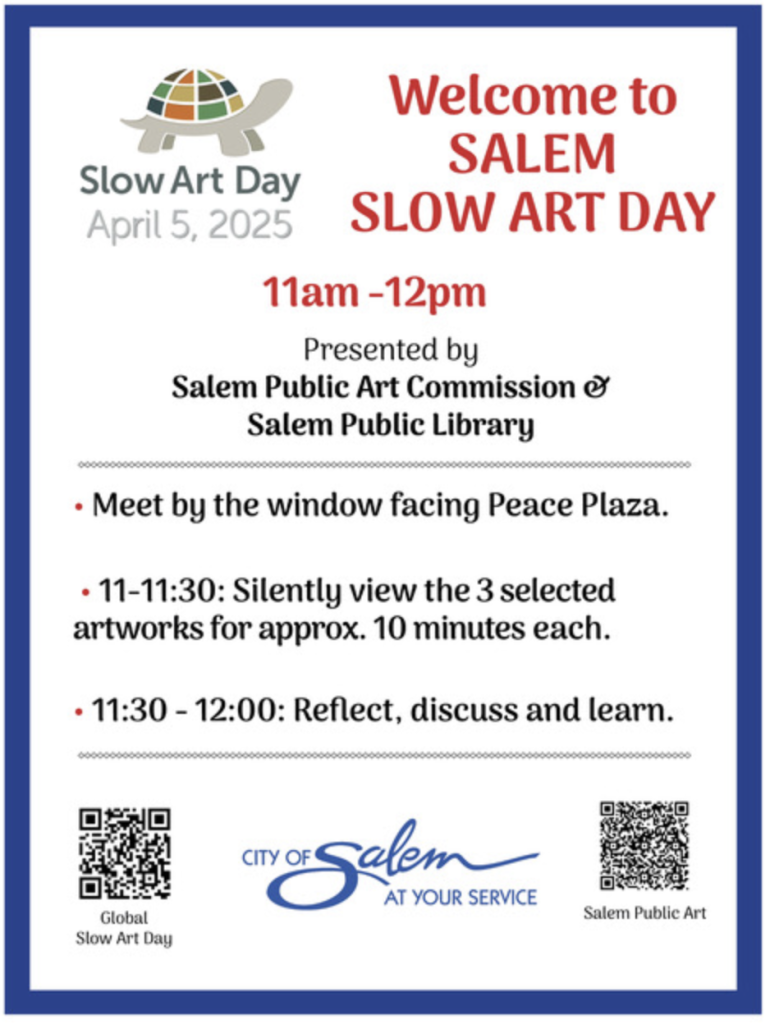 We look forward to seeing what the Salem Public Art Commission comes up with for Slow Art Day 2026.