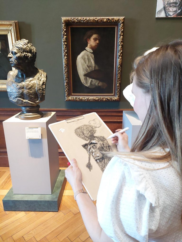 To guide the slow looking experience, Gault incorporated educational frameworks including Project Zero Visible Thinking routines from the Harvard Graduate School of Education and the Thinking Museum® Approach developed by museum educator Claire Bown, author of The Art Engager: Reimagining Guided Experiences in Museums. Participants engaged in several structured activities including Memory Draw, Engage & Imagine, and 3–2–1 Reflection, each designed to deepen observation, interpretation, and conversation.