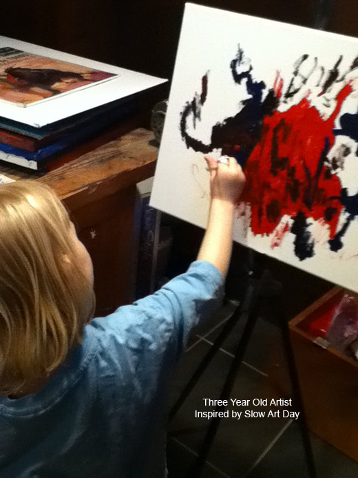 And perhaps the best for last is the three year old painting. Here’s what was said by the Slow Art Day host: “Best Slow Art Day picture EVER. One of the participants of Slow Art Day sent me this picture of his 3 year old daughter after they both attended yesterday. She had never painted before, but immediately after they left she wanted to paint so he bought her paints, a canvas and an easel. Slow Art Day just inspired someone to start painting at 3 years old. It doesn’t get any cooler than that.”