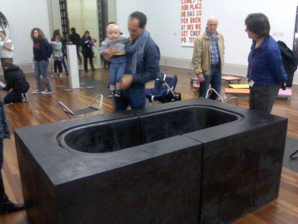 Although the weather outside was cold and rainy, the feeling inside the United Kingdom’s Tate Britain was sunny and inspired for attendees of Slow Art Day on Saturday, 28th April, 2012. A stimulating event that built a stronger interest in art among its attendees, this was the second Slow Art Day event that Paul Langton hosted. Paul collaborated with Tate’s Community Learning team on several promotions, including an informative post on Tate’s website, and this year’s event attracted a wider and varied audience than the previous year’s, including a one-year-old baby as well as Tate’s Curator of Community Learning, Liz Ellis.The attendees chose to stay together throughout the event rather than viewing the selected pieces individually, and together they thoughtfully viewed a variety of media, including video, oil, urethane, concrete, and more. (The baby was particularly interested in the concrete piece, a bust of Stalin by Peter Lazslo Peri!) Among these was Rachel Whiteread’s Untitled (Black Bath) below.
