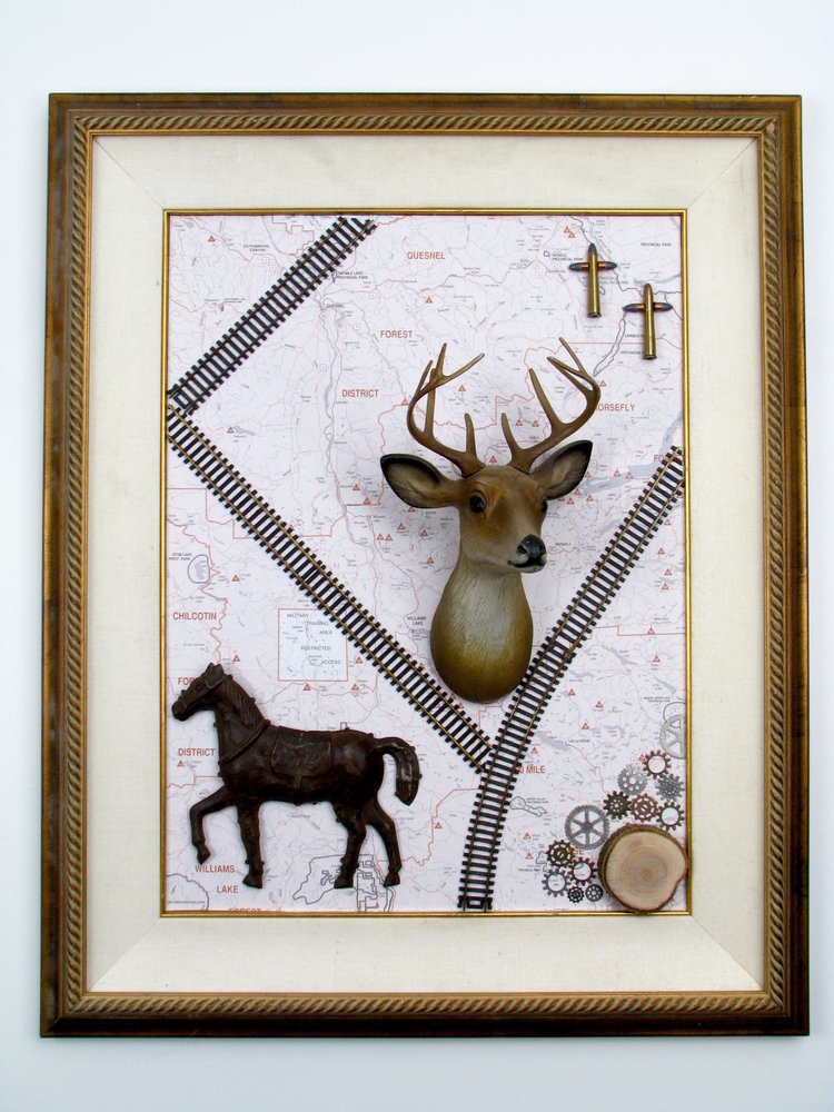 Valerie Arntzen, assemblage artist at AMP Studio in Vancouver, Canada, invited Slow Art Day 2019 participants to look at one of two pieces of her artwork slowly and then discuss the experience.