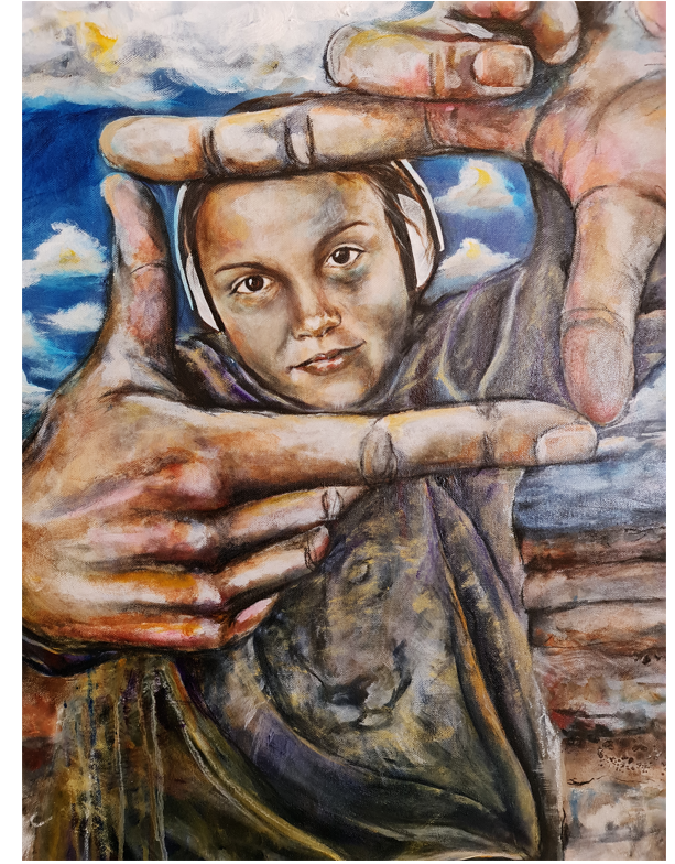 A section of the painting by Evarné van Niekerk. Oil on canvas.