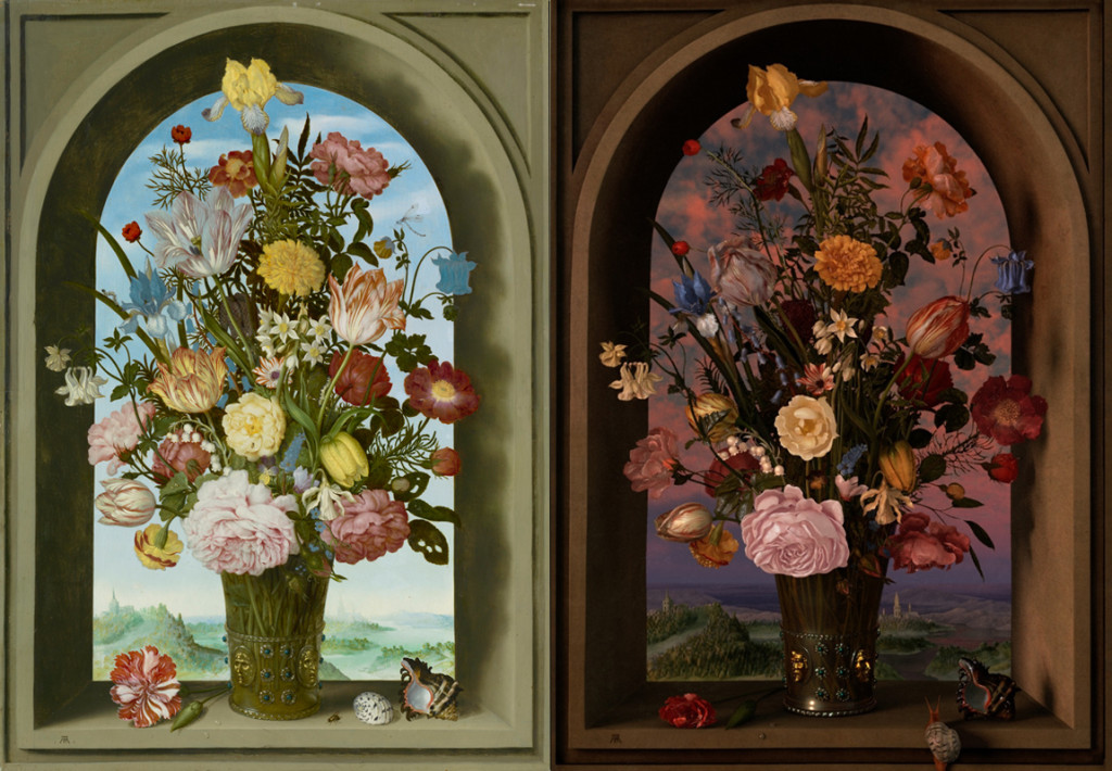 The Frick’s new exhibition “Vermeer, Rembrandt, and Hals: Masterpieces of Dutch Painting from the Mauritshuis” features an enlivened version of Ambrosius Bosschaert’s Vase with Flowers in a Window.