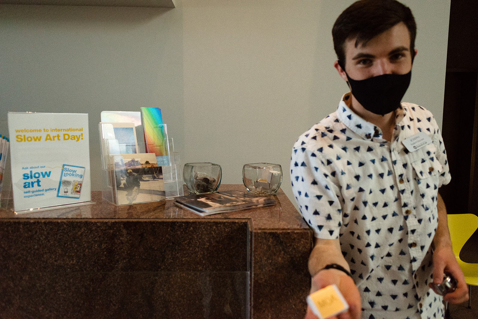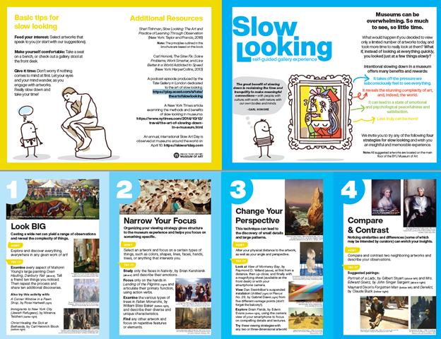 For the event itself, the gallery handed each participant a sheet with suggestions for slow looking and a blank space and pen for writing down notes: